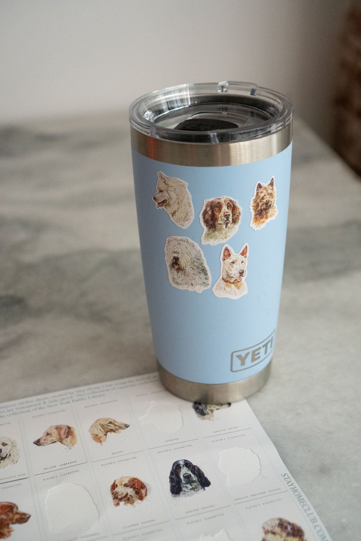 “Demain Domain” is a series of multi-purpose sticker sheets created using the best of art history available in the public domain. This page comes from a collection of cigarette cards painted by Peter Biegel and released by Player's Cigarettes in 1955. It comprises a whopping 23 stickers of all different dog breeds that can be used to decorate anything you please!