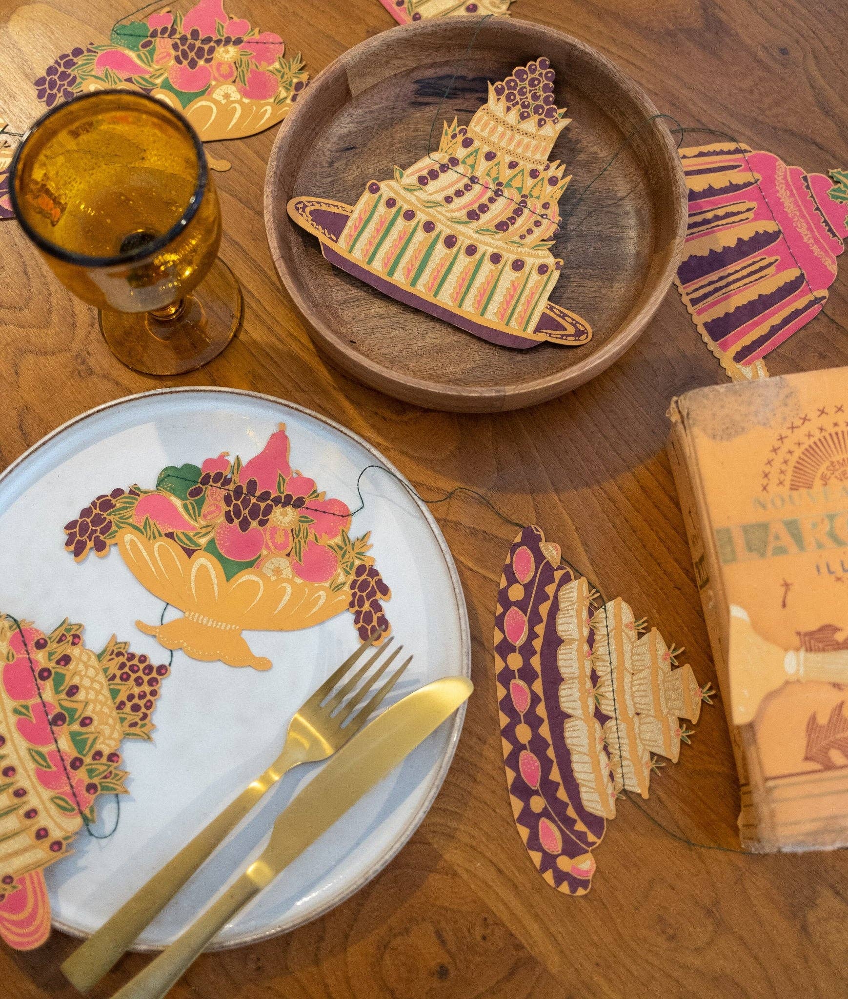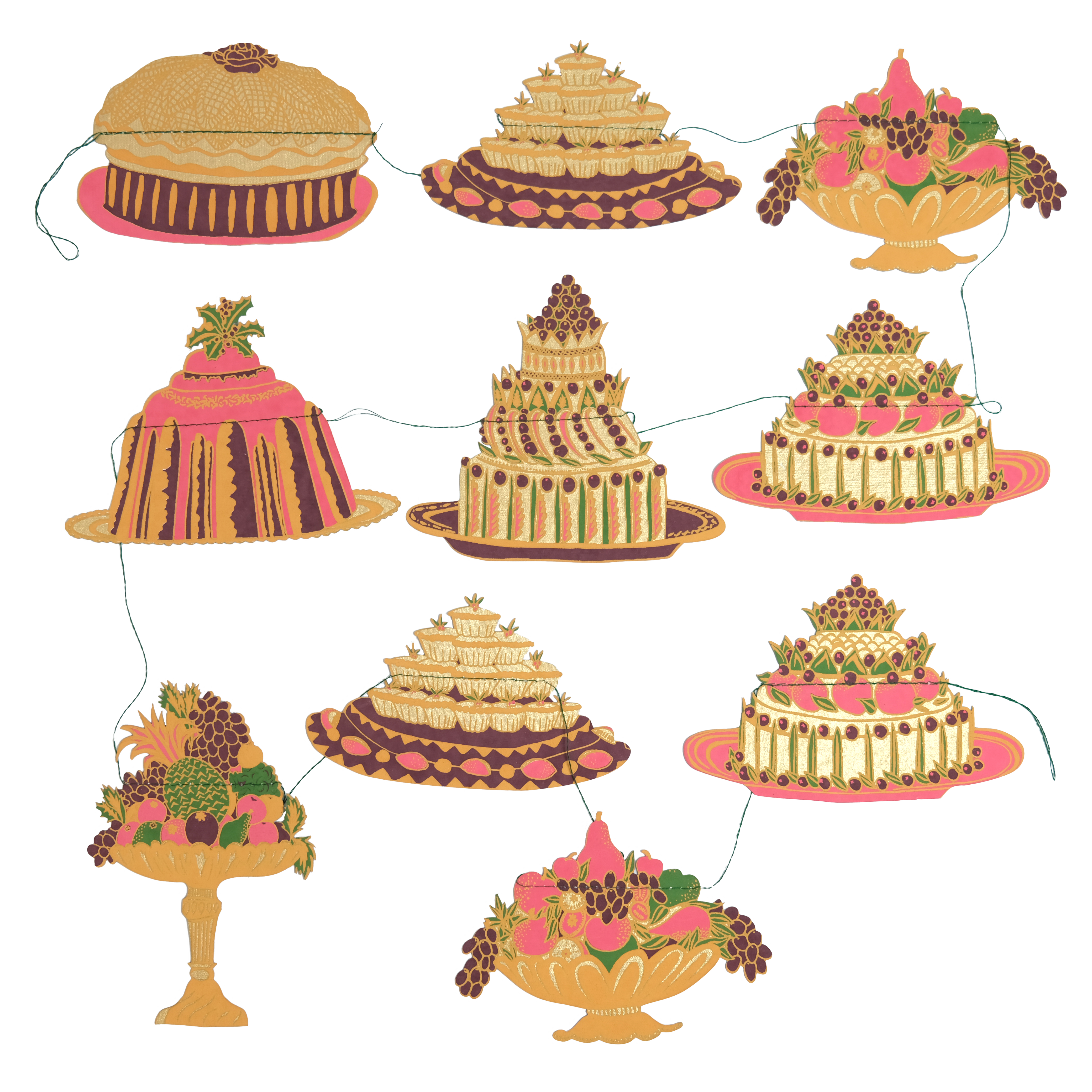 Inspired by old cook books and puddings of the past, this garland has ten delicious pies, tarts and cakes strung along three metres.