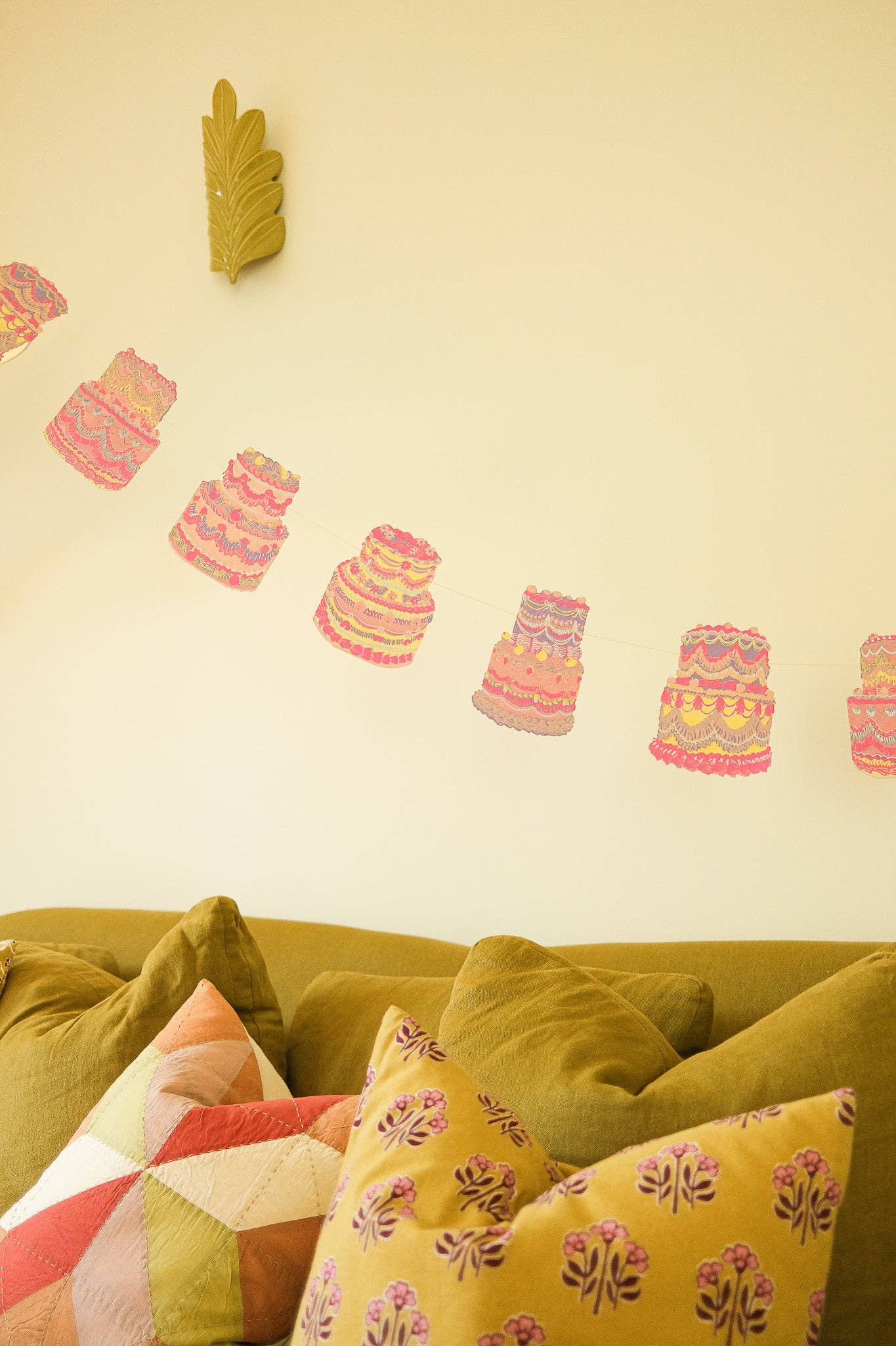 Three metres of frosted cake illustrations, trimmed with cherries and icing swirls, makes the perfect garland for birthdays, baby showers, or any fun celebrations.