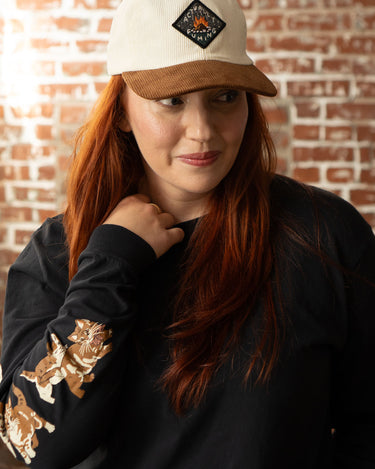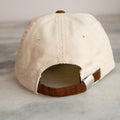 This is a six panel, unstructured, low-profile baseball cap aka dad hat in two ice-cream-inspired tones of lush, velvety corduroy. It has a slightly deeper fit than our standard dad hats and seemingly suits pretty much everyone. A gorgeous, high quality, felt and embroidered patch has been securely sewn onto the hat in-house. Fully adjustable using a metal sliding buckle at the back. Unisex fit.