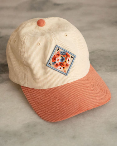 This is a six panel, unstructured, low-profile baseball cap aka dad hat in two ice-cream inspired tones of lush corduroy. It has a slightly deeper fit than our standard dad hats and seemingly suits pretty much everyone. A gorgeous, high quality, felt and embroidered patch has been securely sewn onto the hat in-house. Fully adjustable using a metal sliding buckle at the back. Unisex fit.