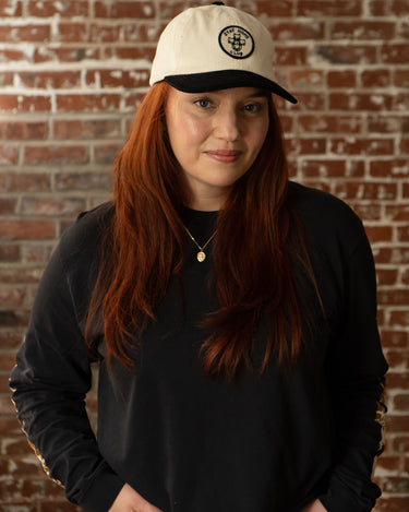 This is a six panel, unstructured, low-profile baseball cap aka dad hat in two tones of lush corduroy. It has a slightly deeper fit than our standard dad hats and seemingly suits pretty much everyone. A gorgeous, high quality, felt and embroidered patch has been securely sewn onto the hat in-house. Fully adjustable using a metal sliding buckle at the back. Unisex fit.