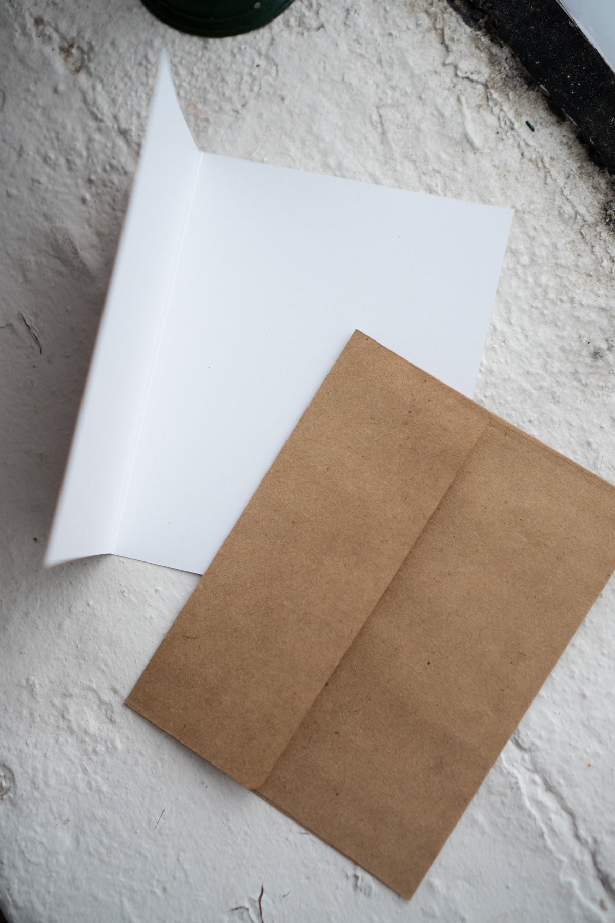- A2 (4.25" x 5.5") folded card with envelope (envelope colour can vary)