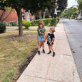 In these photos: Ily (7 yrs) wears a size XS in cotton candy and beachy blue, before washing. Hanna (8.5 yrs) wears a woodsy green in size S before washing.