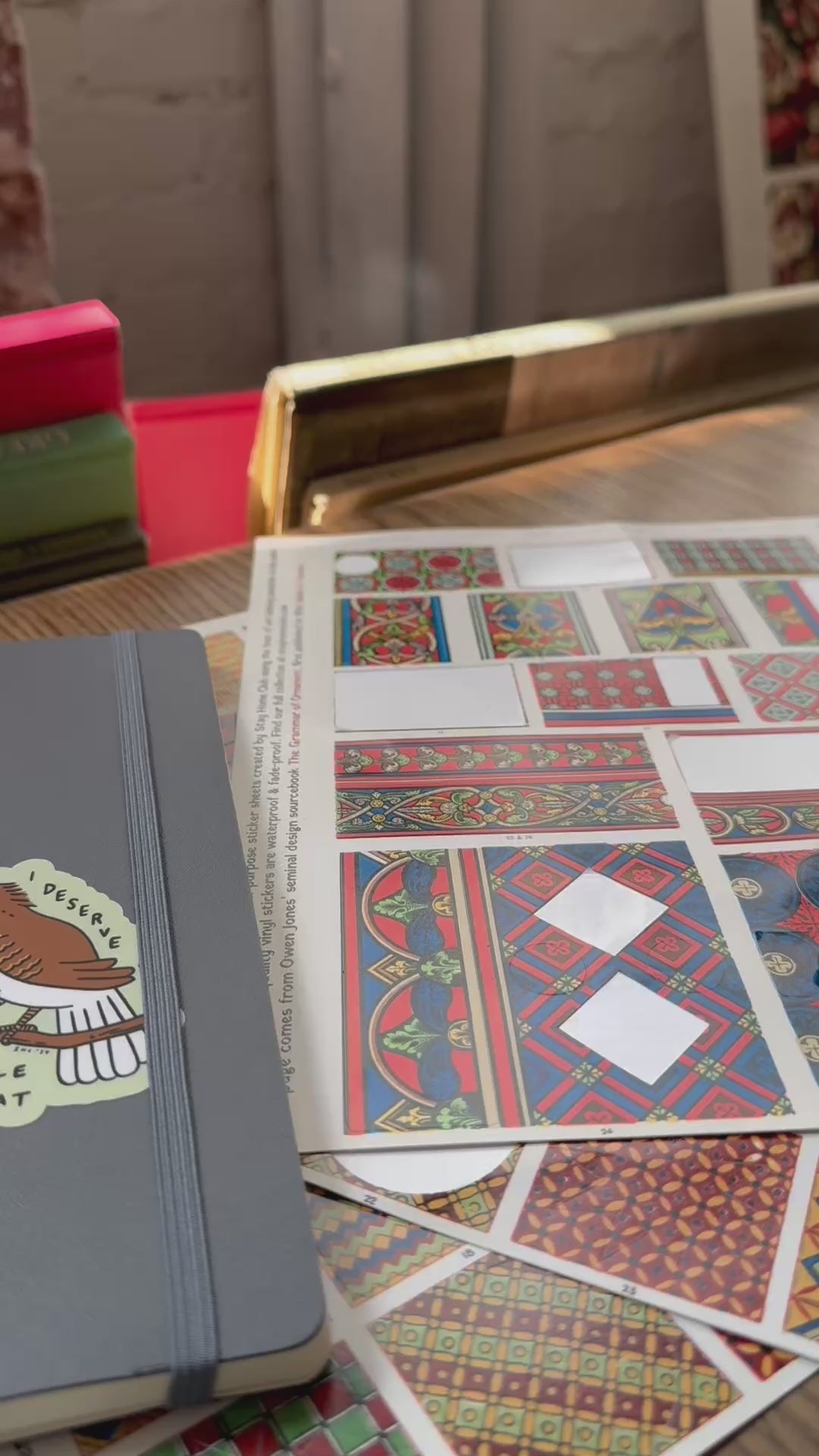 “Demain Domain” is a series of multi-purpose sticker sheets created using the best of art history available in the public domain. This page comes from Owen Jones’ seminal design sourcebook The Grammar of Ornament, first published in 1856. It comprises a whopping 30 stickers that can be used to decorate anything you please!