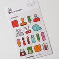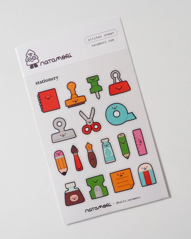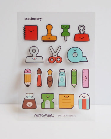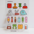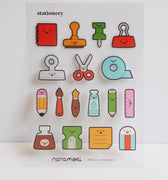 This 3.5" x 5" CLEAR sticker sheet features 12 adorable stationery-themed kiss-cut stickers printed on glossy PVC: scissors, tape, push pin, pencils, ruler and more! They're water and scratch-resistant but should be hand-washed if applied to surfaces that require cleaning :)