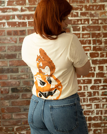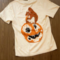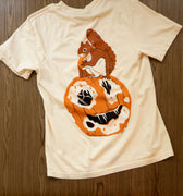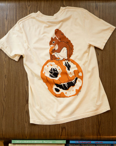• Printed with eco-friendly, soft to the touch water-based ink on a cream coloured 100% ringspun heavyweight cotton Comfort Colors® tee. Small "been better" chest print and oversized squirrel and pumpkin print on the back.