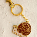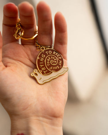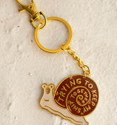 Keychain in soft enamel with gold tone metal and glossy epoxy coating. 1.75" wide. Bag clip is attached to the hardware and can be removed if desired!